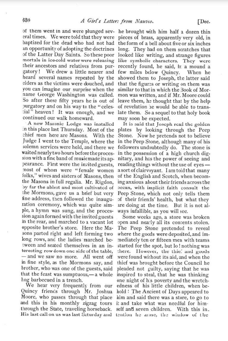 12. Charlotte Haven, "A Girl's Letters from Nauvoo," The Overland Monthly, 16 (Dec. 1890), p. 630. This letter is dated: "City of Nauvoo, May 2, 1843."