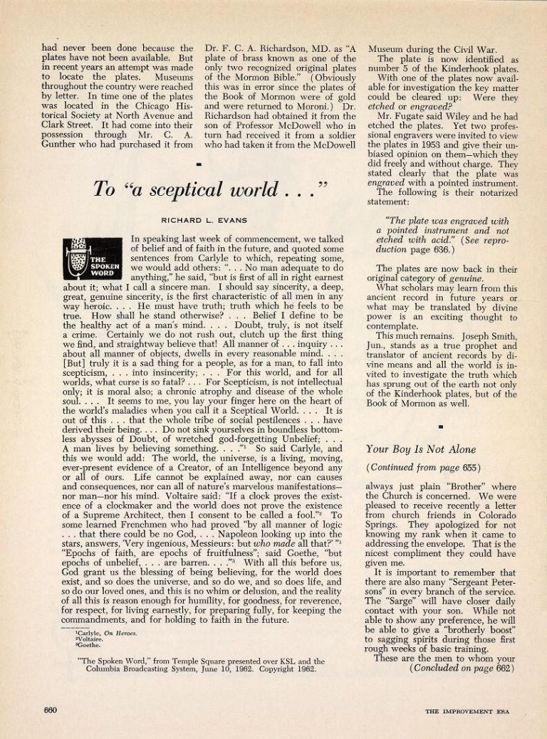 The plates greatly excited public curiosity in the area, and within a week of their alleged discovery they were brought to Nauvoo for a short stay. An editorial comment in the same Times and Seasons article indicates how important the eager writer felt these brass plates might be: "Circumstances are daily transpiring which give additional testimony to the authenticity of the Book of Mormon. . . . The following . . . will, perhaps have a tendency to convince the sceptical, that such things [metal plates] have been used, and that even the obnoxious Book of Mormon, may be true."