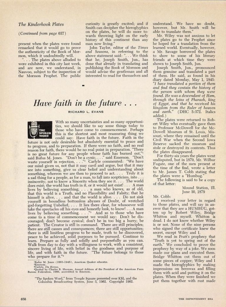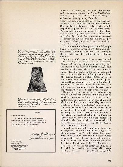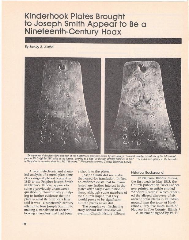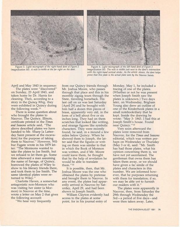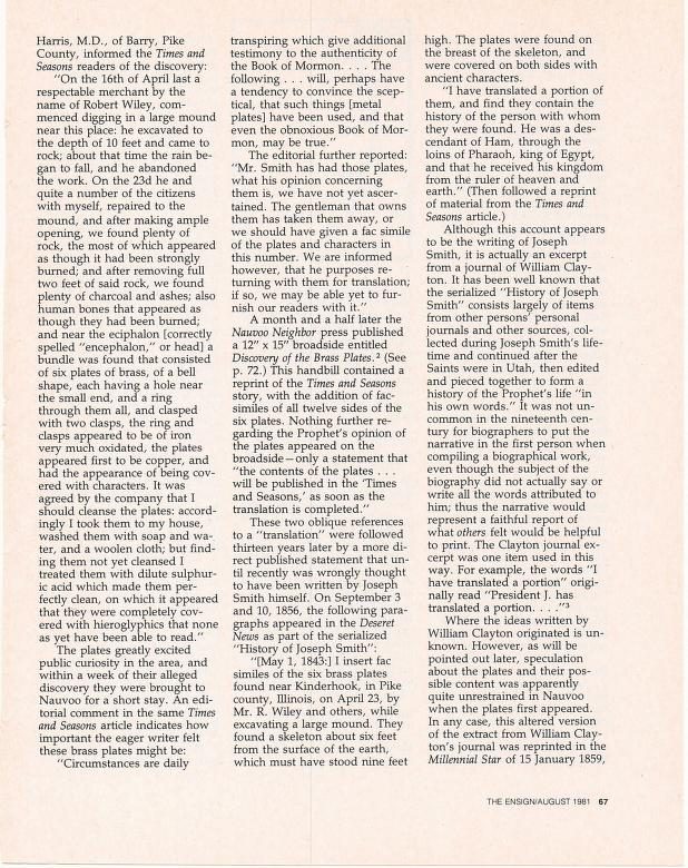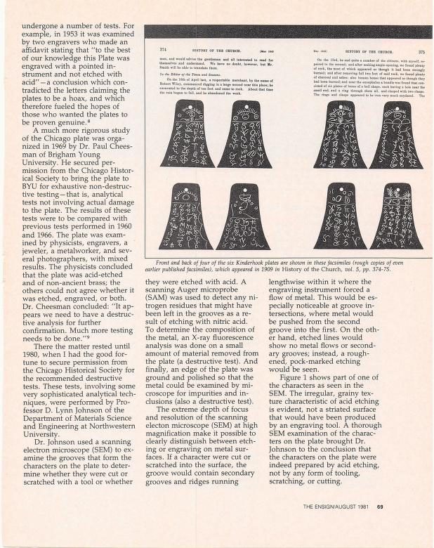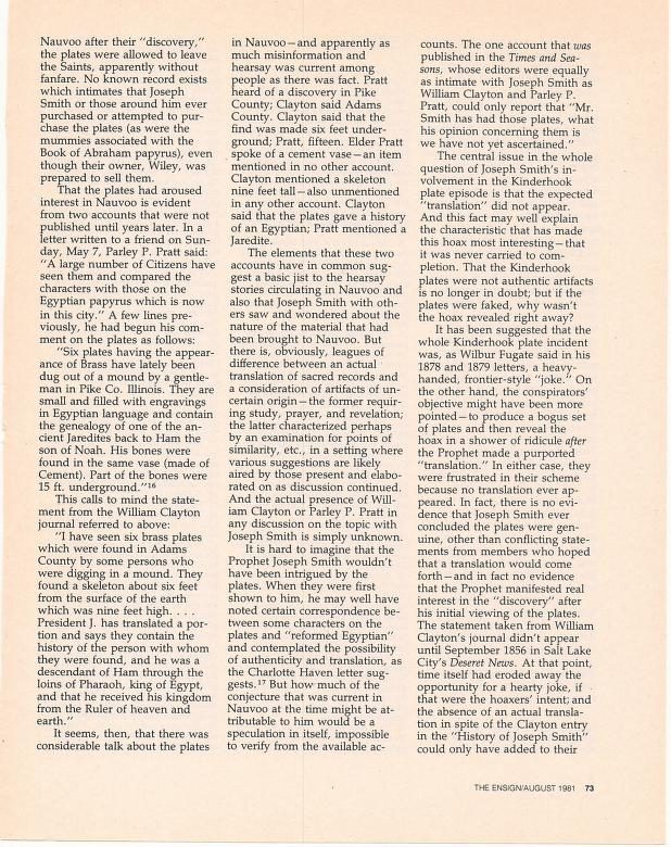 In the Ensign, published in August 1981, the church published another article on the Kinderhook plates.