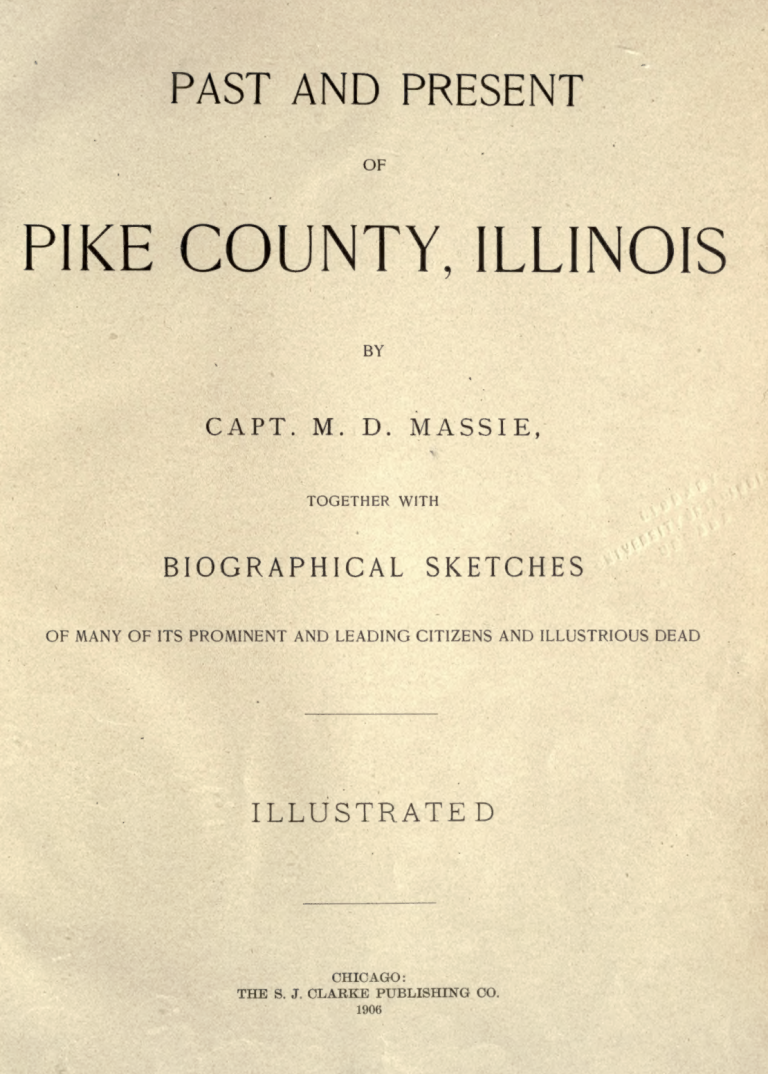 [Captain, M. D. Massie, Past and Present of Pike County, Illionis, (1906), pg, 87]