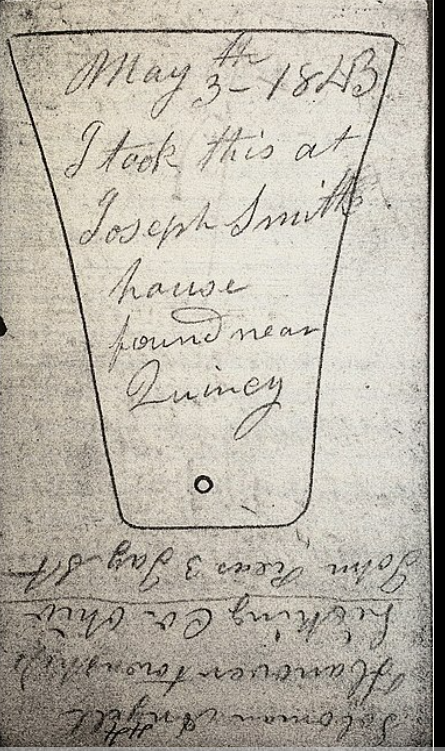 [accompanying an outline of one of the Kinderhook Plates]: May 3—1843. I took this at Joseph Smith’s house. Found near Quincy.
